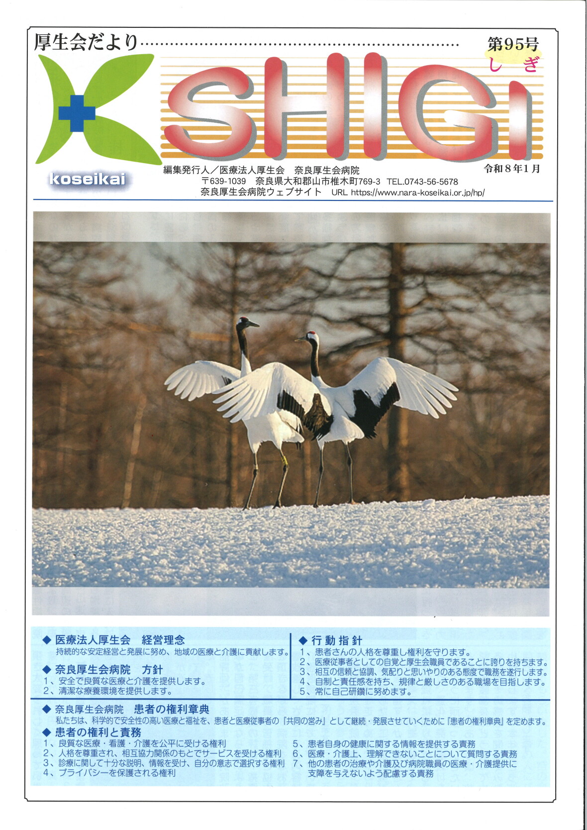 2026.01.29 広報誌 厚生会だより「SHIGI」(95号)の発行 厚生会だより「SHIGI」(95号) を発行しました。 当院の活動・取り組みを取り上げています。 SHIGI_95号(1.7MB)